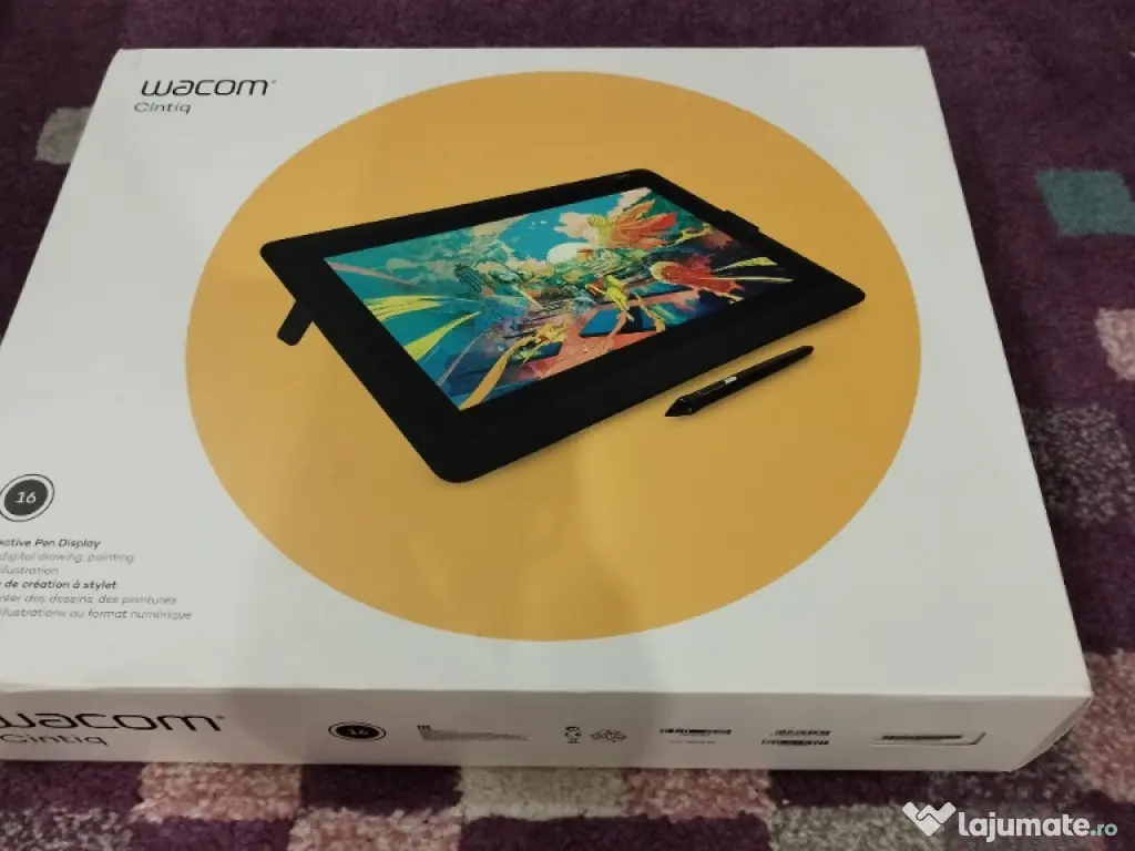 Vine in cutia originala, cu toate accesoriile, cu toate "nibs-urile" cu care a venit initial (varfurile creionului digital). Este Full HD, si o vand impreuna cu un suport reglabil pe inaltime care se prinde de spatele ei cu suruburi.
