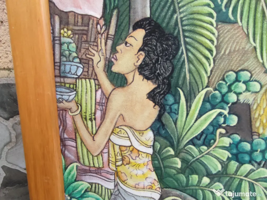 Vând tablou pictură tradițională din Ubud, Bali, realizată în acrilic pe pânză în 1986 și semnată Iaiy Narja.