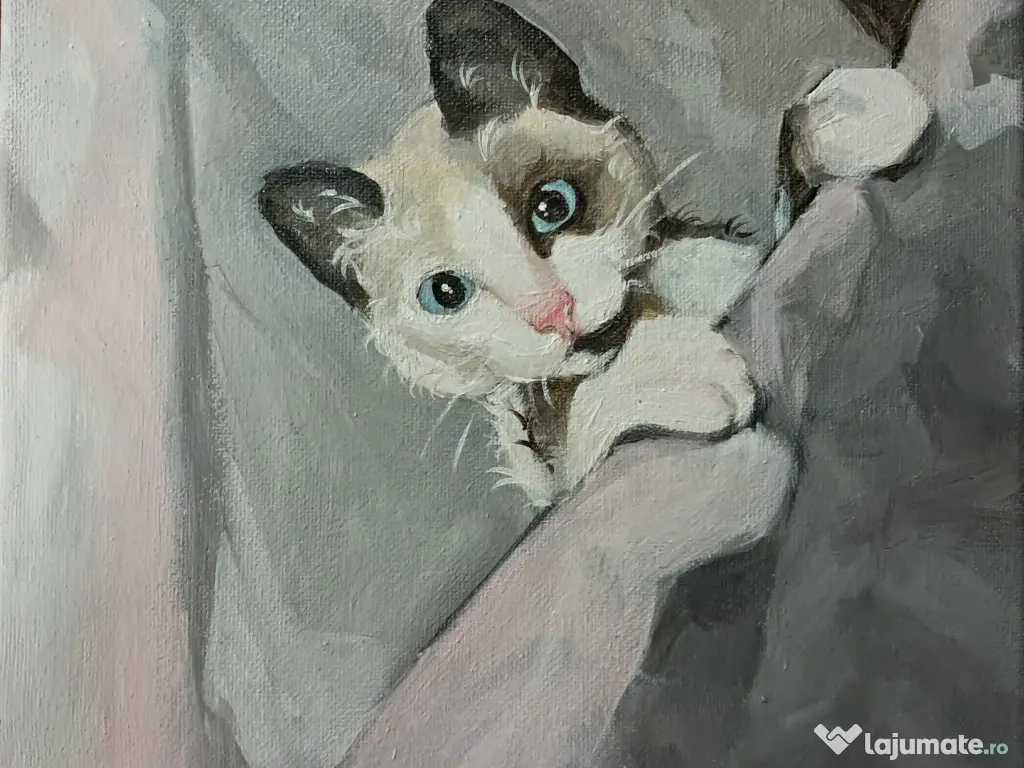Realizez tablouri pictate manual cu animalul tău de companie sau mai multe animale/persoane, după fotografii trimise de tine.