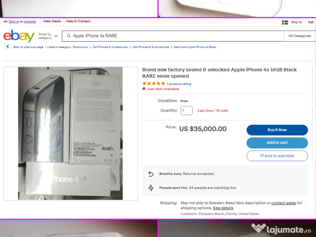 Telefon iPhone 4s alb si cutie originala editie RARA de COLECTIE