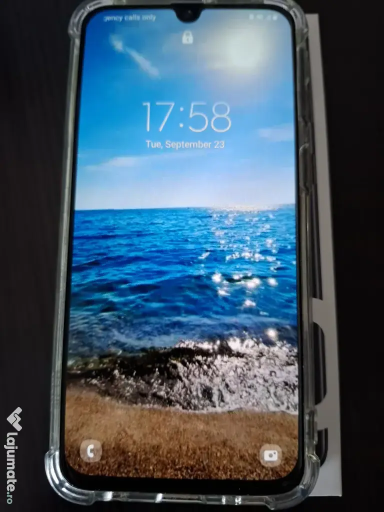 Are incarcator, cablu, husa plastic spate si o folie protectie ecran de rezerva.