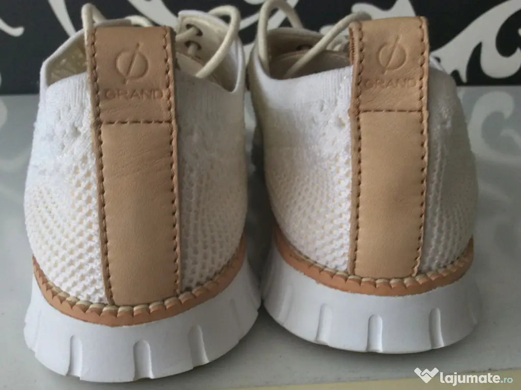 COLE HAAN - Adidași Teniși Basket Baskets Sneakers Pantofi sport cu șireturi, extraordinar de ușori,Absolut NOI, niciodată purtati.Exterior din tricot stretch fara căptușeală. O cusătură de tricot finisată în zona liniei superioare permite introducerea ușoară. Tricotarea strânsă în zona anterioară a piciorului îmbunătățește stabilitatea medială laterală. Detaliu din piele la călcâi și la limba. Talpă interioară Energy foam cu memorie, cu talpă exterioară din cauciuc Executati manual Model C25216. 180 Lei.