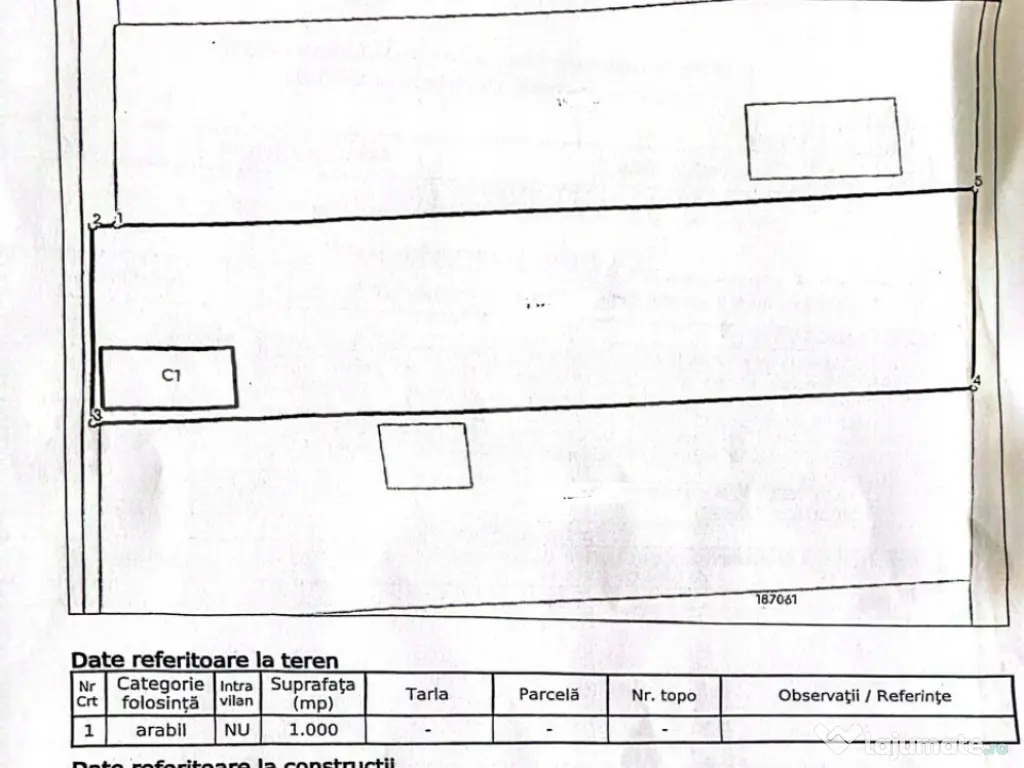 Pe teren se află o construcție parter (P) cu o suprafață de 42 mp, utilizată în prezent ca anexă gospodărească.