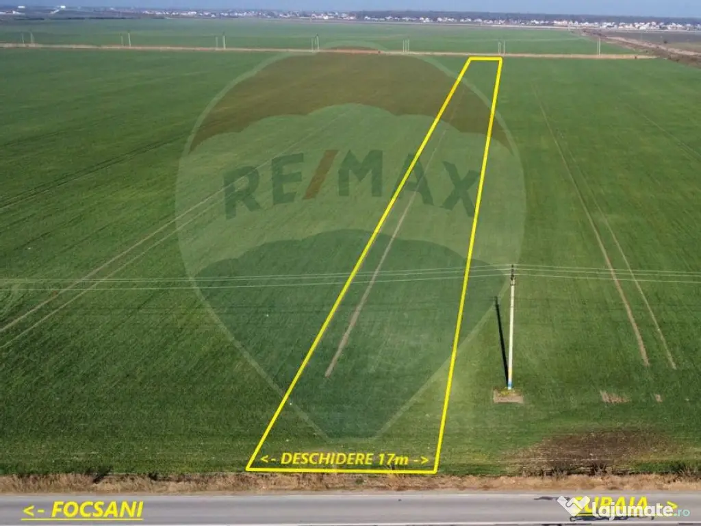 Va propun spre vanzare un teren extravilan in suprafata totala de 10.000mp. Acesta este situat pe raza municipiului Focsani , pe drumul judetean 204D ( Soseaua Suraii ) si beneficiaza de un front stradal de 17m. Pentru mai multe detalii ma puteti contacta.