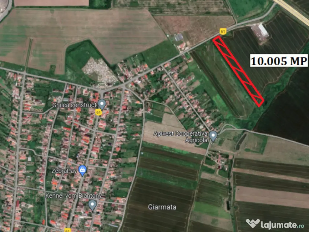 Vand teren in Giarmata, arabil extravilan, in suprafata de 10.005 mp, cu front la sosea de 22 ml, utilitati: apa, canalizare in fata terenului, teren imprejmuit. Pret : 275.000 euro ID : RH-32261-property