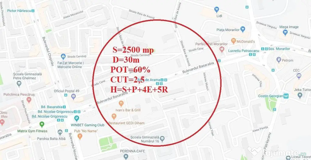 Imobiliar Expert Grup va propune spre vanzare un teren de 2500 mp, cu deschidere de 30m, incadrat in zona urbanistica M3, POT=60%, CUT=2,5, H=S+P+4+5R.