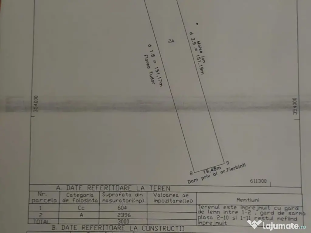 Pe teren există o construcție veche, neutilizabilă, care poate fi demolată de proprietar pe cheltuiala proprie, la înțelegere.