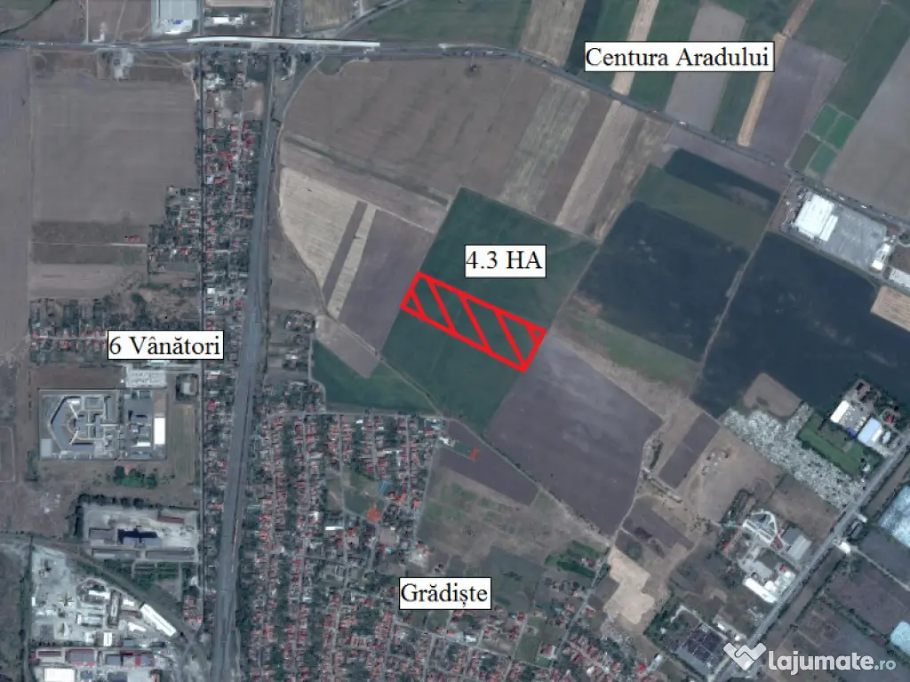 Vand teren zona Gradiste, teren in suprafata de 4,3 ha, terenul se afla in continuarea strazii Randunicii, teren intravilan, a -3-a Parcela, utilitati: apa, gaz si curent la aprox. 100 m. Pret : 16 euro/mp. ID : RH-31929-property