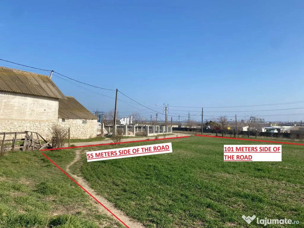 Terenul beneficiază de dublă deschidere de aproximativ 55 m și 101 m, ceea ce îl face ideal pentru dezvoltări comerciale, logistice sau pentru parcelare.