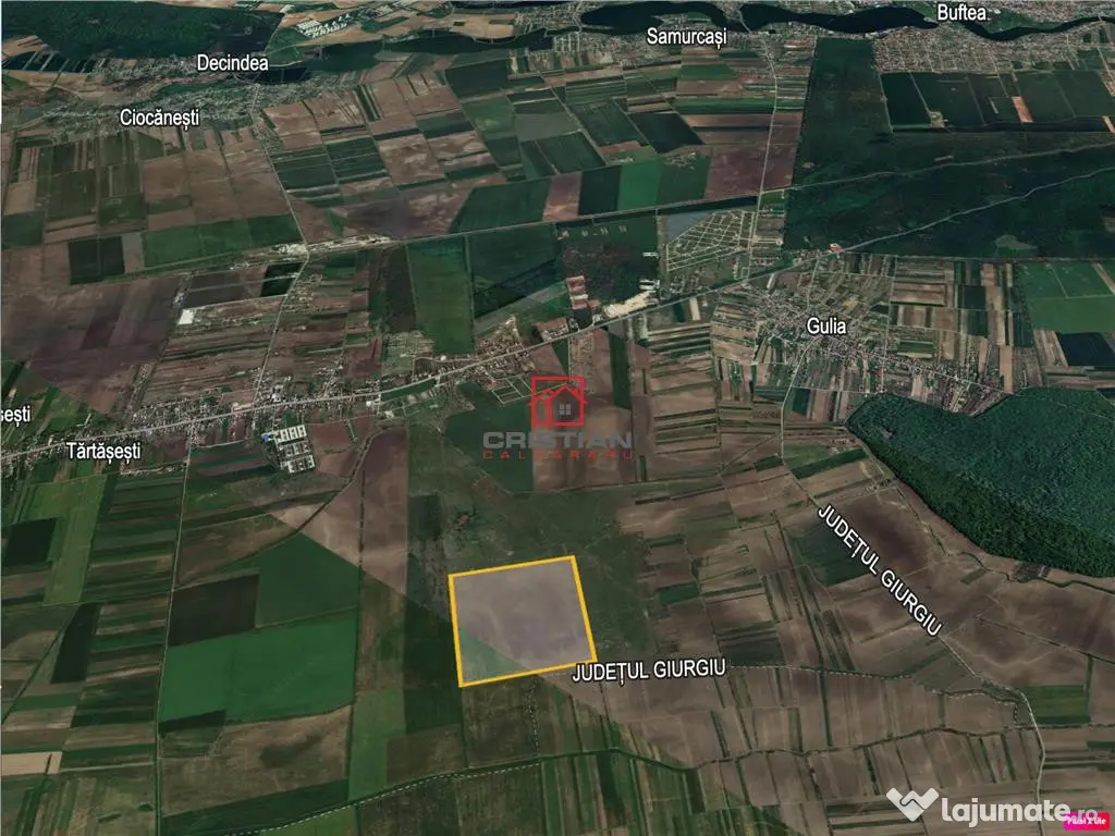 Vanzare teren agricol Tartasesti - Gulia, Dambovita. Proprietatea este compusa din teren agricol extravilan, suprafata 235.000mp(23.5Ha), deschidere 550ml la drum de exploatare. Terenul se preteaza pentru construire cladiri cu destinatie: agrement, rezidentiala, parc fotovoltaic, parc logistic. Pret vanzare - 1.175.000euro COMISION AGENTIE 3%