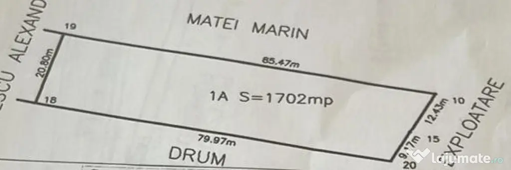 Teren Bolintin Deal cu o suprafata de 1700 mp, din care 300 mp drum de servitute, Deschidere 20.
