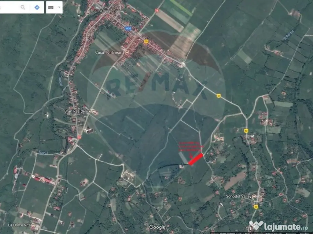 Compania imobiliară RE/MAX Central Brașov vă propune, în sistem de reprezentare exclusivă și cu comision 0% pentru cumpărător, un teren intravilan de 6.900 mp, situat în una dintre cele mai frumoase zone montane din România – Bran–Sohodol, la intrare dinspre Tohanul Nou, la aproximativ 1,5 km de DN73.