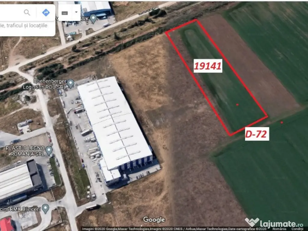 DejaVuImobiliare va ofera spre vanzare un teren cu o suprafata de 19.141 mp cu posibiliatea de a mari suprafata cu inca 23.000 mp,terenul este situat langa Quehenberger Logistics ROU S.R.L adica la 400 metri de Centura Bucuresti,este o Zona Industriala,Vizavi de Fabrica Chipita. D -72 metri Nu mai insistati !!! nu se parceleaza in suprafate de 3000 mp Pret 45 Euro Contact Non Stop