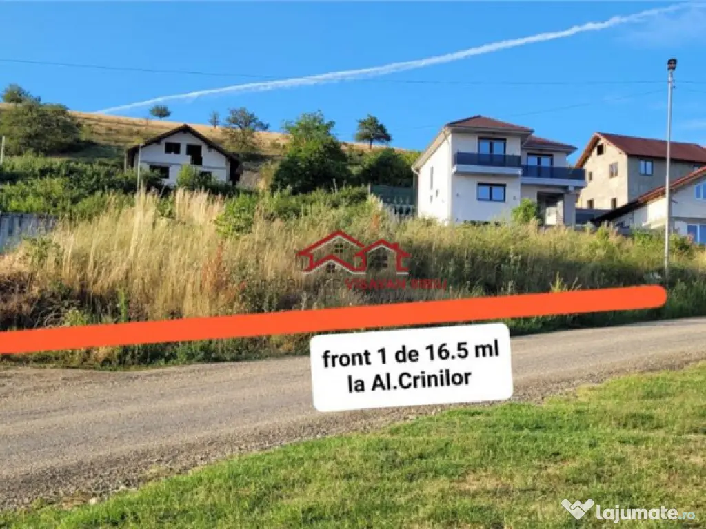 Agentie imobiliara va ofera spre vanzare, in reprezentare exclusiva si in colaborare cu toate agentiile imobiliare, un teren cu autorizatie de construire pentru locuinta parter si etaj, situat in zona rezidentiala a strazii Aleea Crinilor, com. Sura Mare, jud. Sibiu, la circa 5 km de orasul Sibiu si de noul mall-ul Terezian, Kaufland, Hornbach, etc., cu acces simplu, comod si rapid in orice directie, inclusiv drumuri nationale si autostrada. Terenul este proprietate privata, are suprafata de 491 mp, iar deschiderea este la doua strazi publice, de 16.5 ml, respectiv 15.90 ml. Toate utilitatile sunt in fata terenului, iar gazul metan este in curs de aprobare. Conform Autorizatiei de Construire, emisa la 07.05.2025, de Primaria Sura Mare s-a autorizat executarea lucrarilor pentru construire locuinta si imprejmuire imobil. Pe teren exista fundatie, in baza proiectului existent . Pretl de vanzare este 48.000 euro . COMISION CUMPARATOR 0 !!!