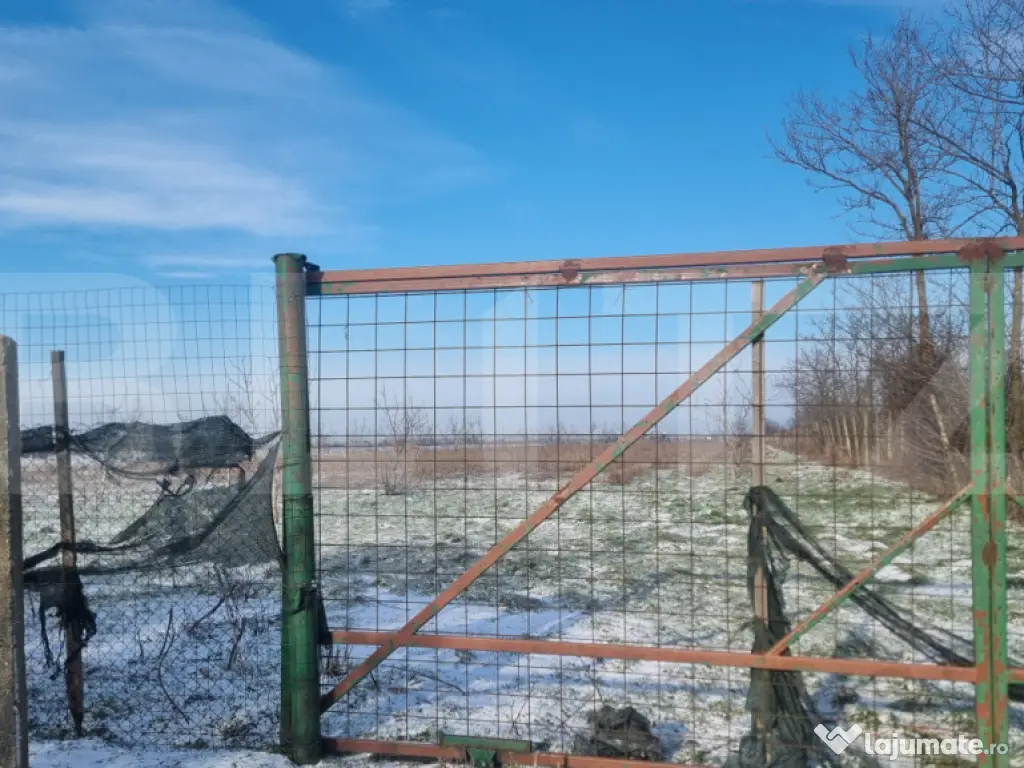 Teren complet împrejmuit (plasă + sârmă ghimpată, stâlpi din beton)