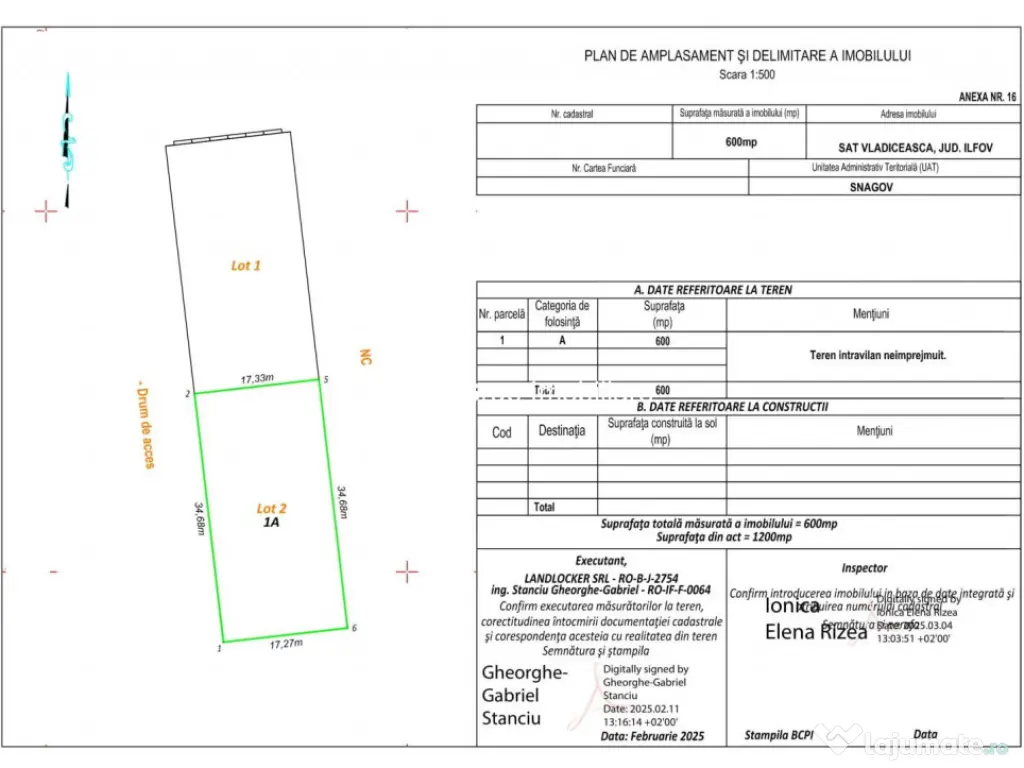 Simte liniștea dimineților cu miros de iarbă proaspătă și culorile apusurilor ce se topesc peste câmpurile verzi. Aici, la doar câteva minute de oraș, îți poți construi refugiul la care visezi. Cu o suprafață de 600 mp si o deschidere de 34m, acces facil și vizibilitate excelentă, terenul este perfect pentru o mică gospodărie, un proiect sustenabil sau o investiție inspirată. Terenul se afla intr-o zonă liniștită, la doar 100m distanta de drum asfaltat și utilitati(canalizare, curent electric si gaze). Lasă planurile tale să prindă rădăcini acolo unde răsăritul îți umple sufletul de energie.