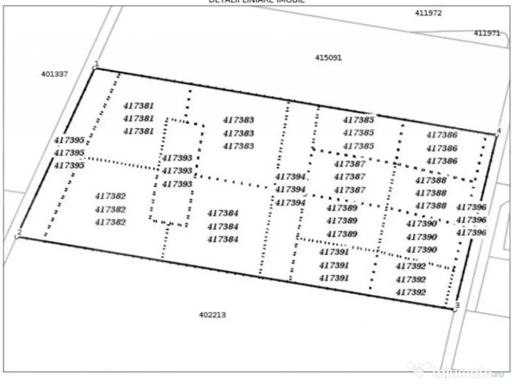 Blitz va propune un teren situat in Giroc, vatra veche a satului, la limita cu Chisoda, cu urmatorii coeficienti conform Urbanism eliberat 2024: - se permit imobile : locuinte colective si servicii la parter, cu maxim 1 unitate locativa/100mp - front la Bulevardul Armatei - suparafata totala de 4736 mp ( 4 parcele alaturate ) - 4 parcele construibile de 1000, 1200, 1200 si 1300 mp, 1 parcela spatiu verde aferent 580 mp - regim inaltime admis : P+2E+M/Er, cu H cornisa max 11m si H coama max 14m - se vor asigura 1,5 locuri parcare/unitate locativa - avize utilitati : apa/gaz/curent/canal/salubritate - zona cu caracter rezidential - POT - 40% - CUT - 1.60 Terenul este ideal pentru dezvoltare rezidentiala avand o pozitie excelenta pretandu-se pentru blocuri de locuinte Cod ofertă / ID BLITZ: P162837 Id intern: P162837