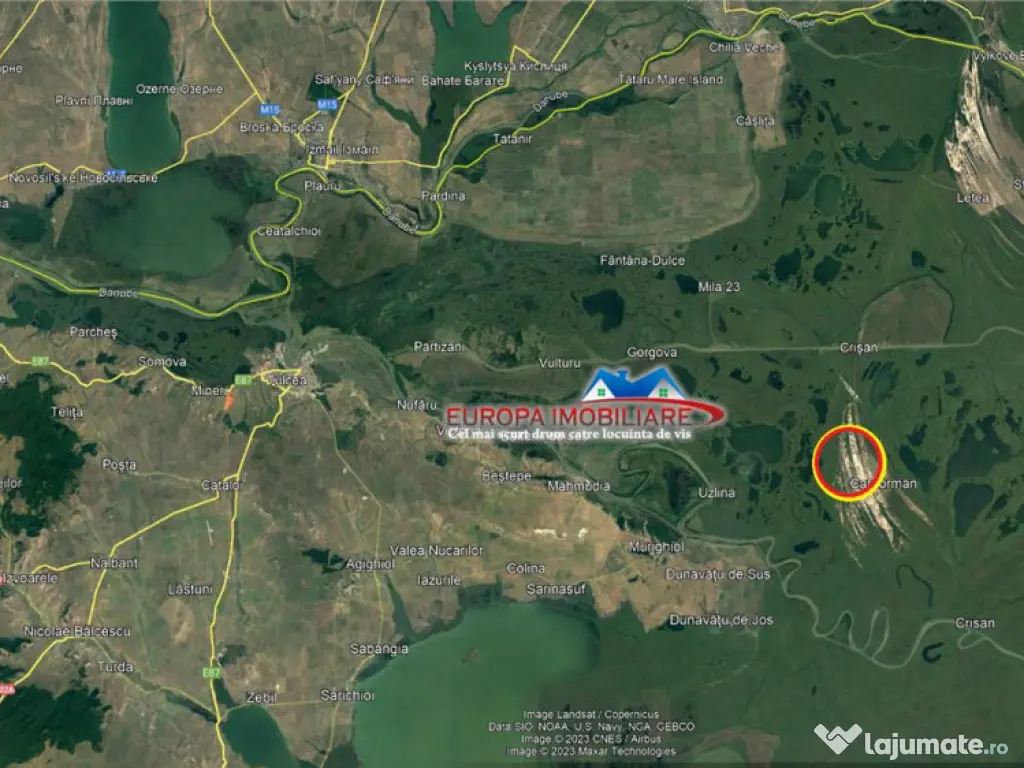 Europa Imobiliare va ofera spre vanzare teren intravilan localitatea Caraorman comuna Crisan Delta Dunarii cu suprafata totala de 6000 m.p. si deschidere stradala de 34 m.l. Terenul este pretabil atat pentru constructie casa cat si pentru pensiune. Utilitatile (apa si curent) sunt la limita terenului. Pretul propus de proprietar este de 36.000 Euro. Pentru mai multe informatii si vizionari nu ezitati sa ne contactati sau va asteptam la sediul agentiei din str. Babadag nr. 12, bl.6, parter (vis-a-vis de CEC BANK). Agentia imobiliara Europa este o agentie de consultanta imobiliara profesionista, care lucreaza pentru tine si cu tine pentru a obtine cea mai buna tranzactie in favoarea ta! Nu conteaza daca esti proprietar sau esti un client in cautarea unei proprietati, noi suntem aici pentru a facilita totul, astfel incat lucrurile sa decurga perfect! ID intern: 4174