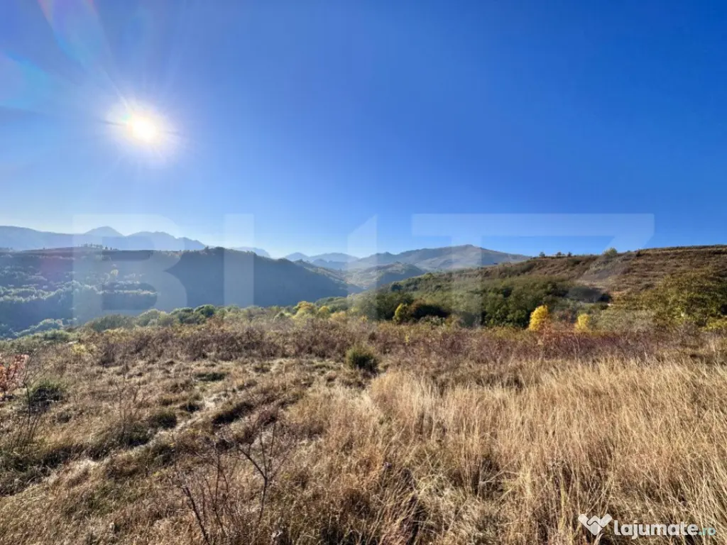 BLITZ propune spre vanzare un teren de 4000 mp situat pe faimoasa Transalpina de Apuseni, la doar 20 km de orașul Aiud. Locația oferă o priveliște pitorească spre munți și păduri, fiind ideală pentru construcții de vacanță, cabane sau chiar pentru dezvoltarea unui mic complex turistic.