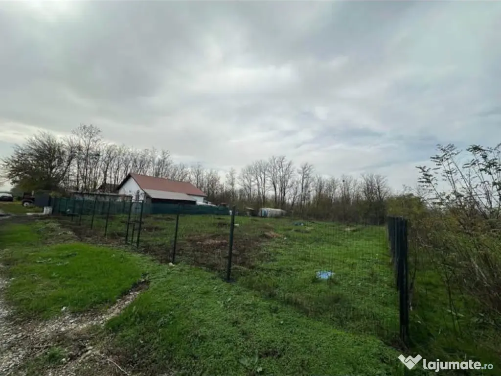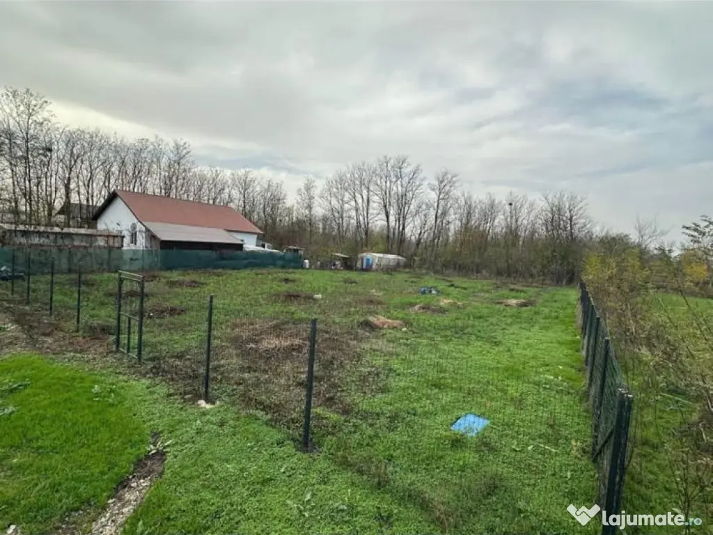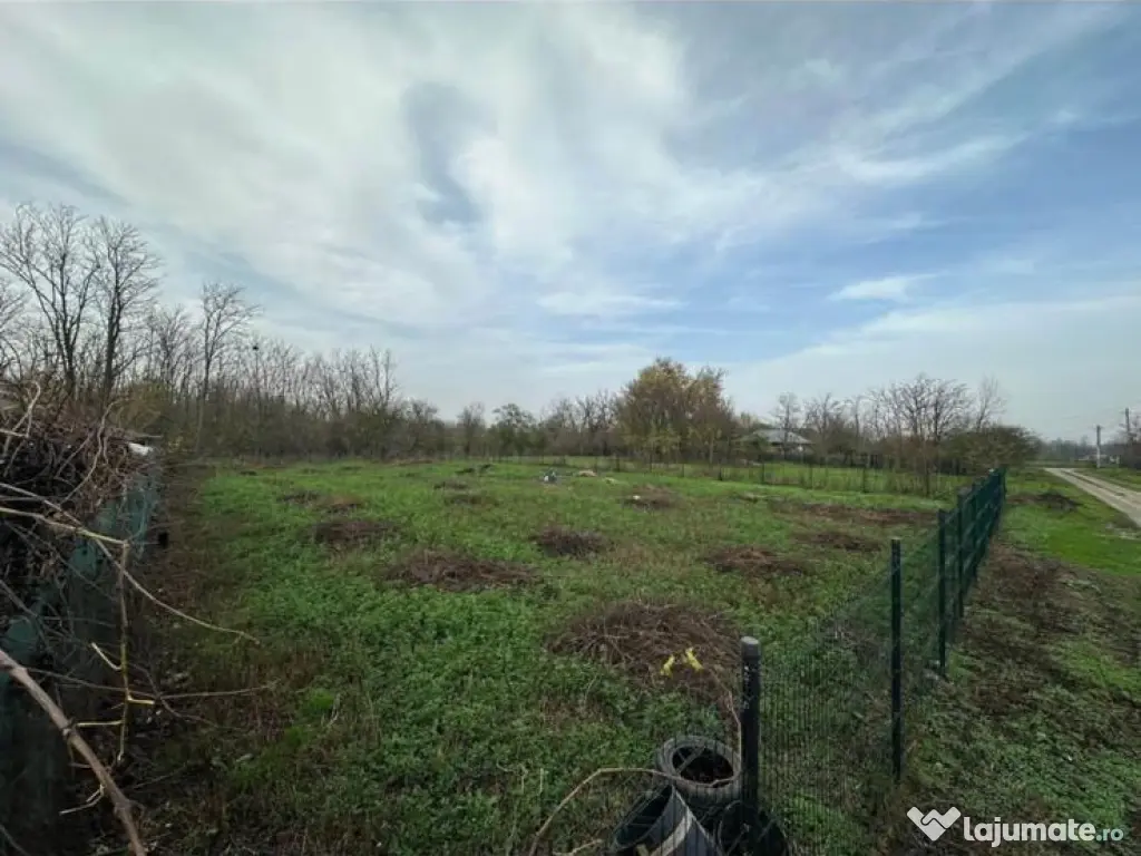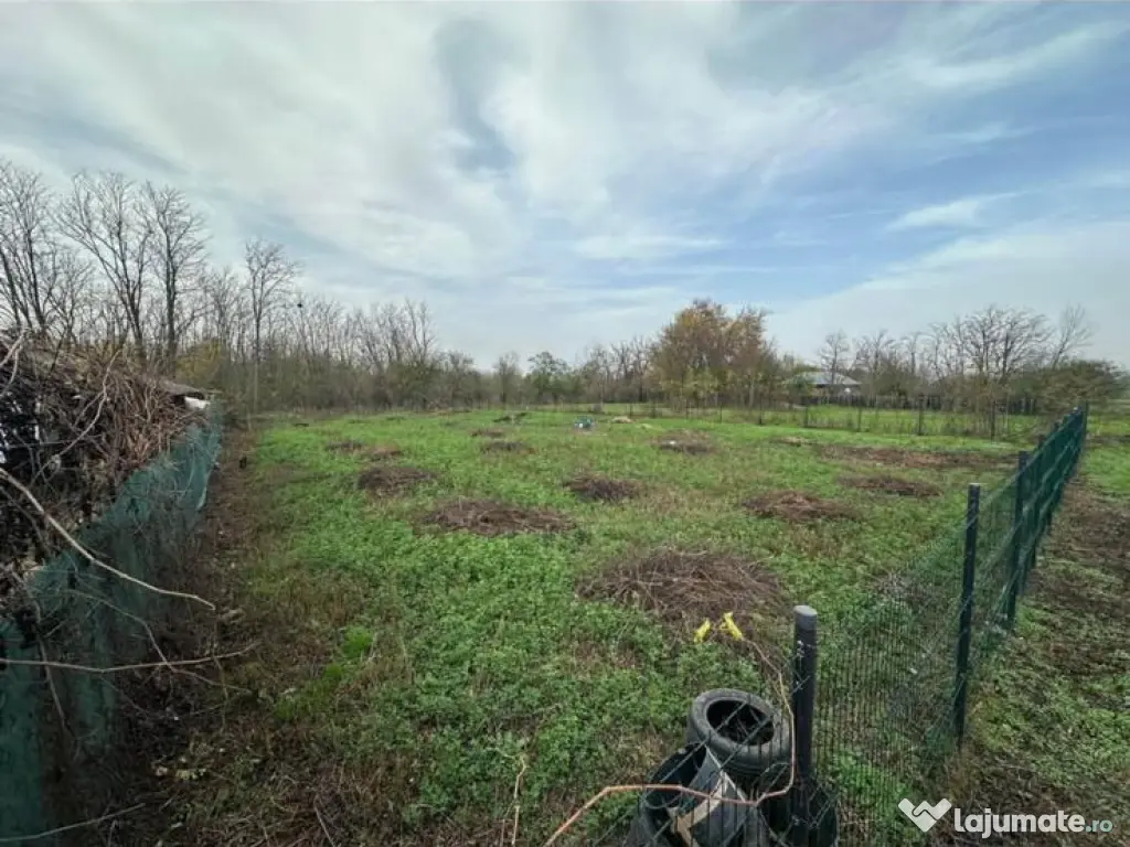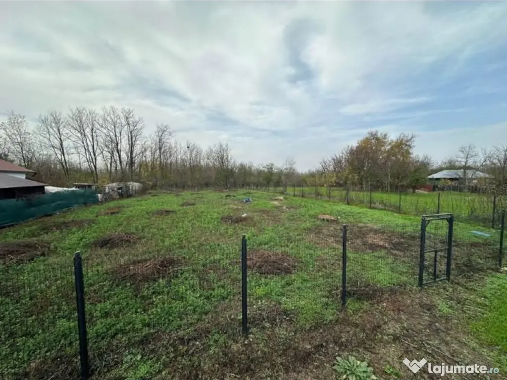 Terenul este îngrădit, are suprafața de 1075mp, deține puț, autorizație de construcție și proiect