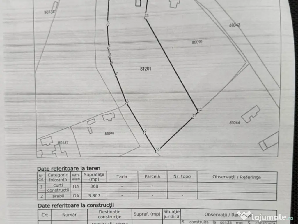 Curti constructii 368 m, arabil (gradina) 3.807 m.