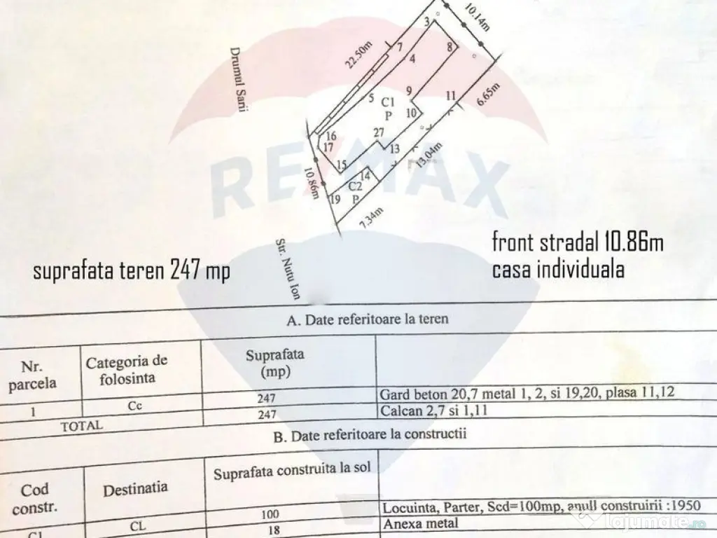 Suprafata teren 247 mp | Casă demolabilă | Ideal locuință sau afacere | Deschidere 10.86m | Vad excelent |