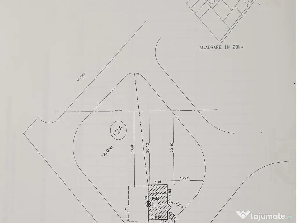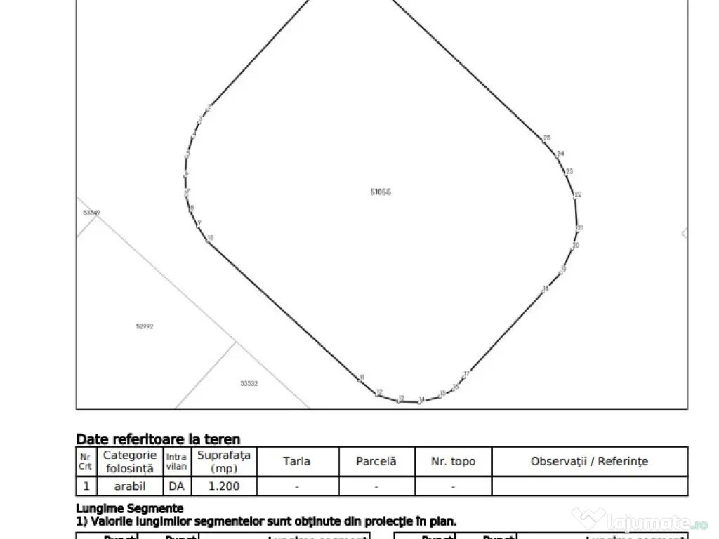 Terenul are suprafata de 1200mp, se afla intr-o zona linistita fiind marginit de drum.