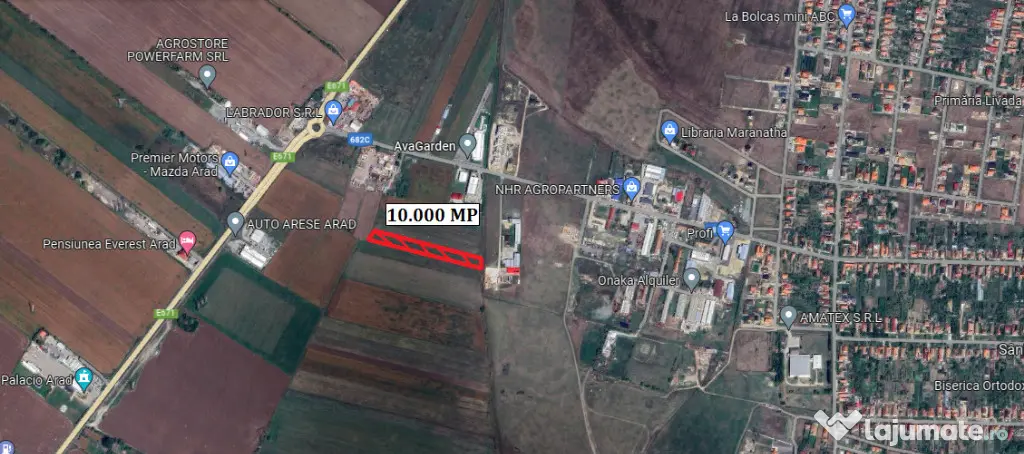 Vand teren extravilan arabil in Livada, in suprafata de 10.000 mp, 2 fronturi stradale, unul de 37 ml si celalalt de 35 ml, utilitati in zona.
