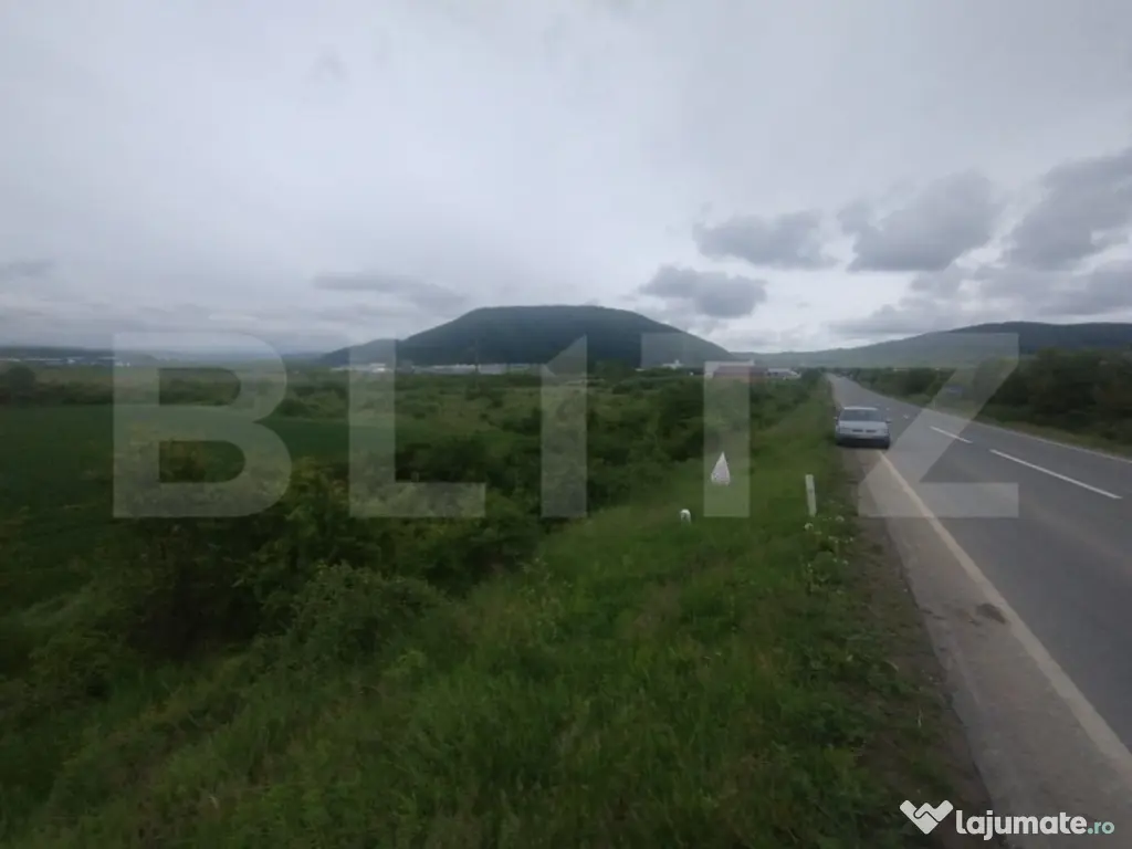 Terenul beneficiază de deschidere generoasă de 40 de metri la drumul european E58 (DN17), arteră rutieră principală ce leagă Transilvania de nord-estul țării, cu trafic intens și accesibilitate excelentă pentru vehicule de mare tonaj.