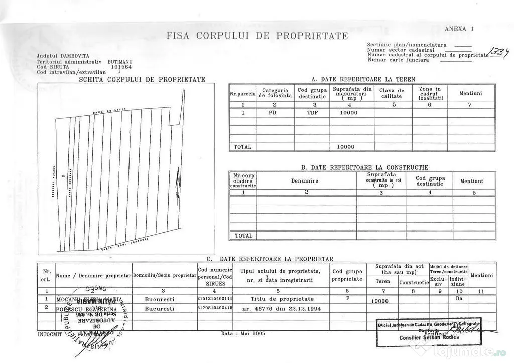 Va propunem spre achizitie un teren cu suprafata de 10.000 de metri patrati aflat langa padurea Lucianca.