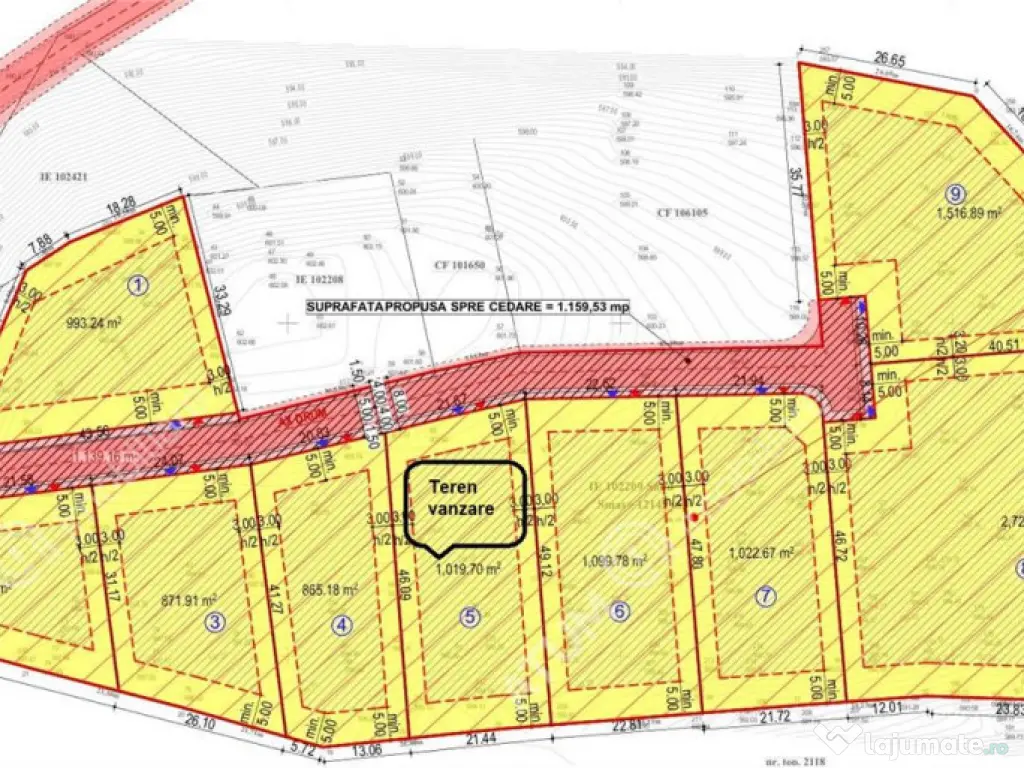 Suprafata minima a unei parcele construibile: 350 mp