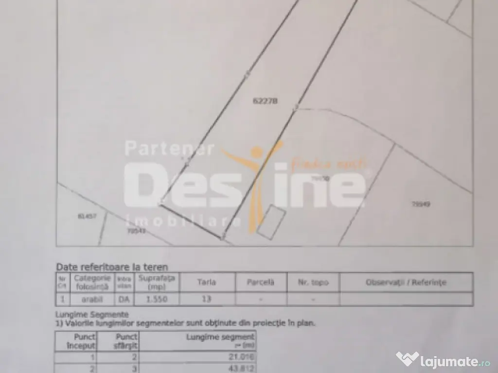 DESTINE IMOBILIARE Iași vă recomandă teren INTRAVILAN, cu un front stradal de 21 m liniari, având o suprafață de 1550 mp în zona Vorovesti - MIROSLAVA. Terenul beneficiaza de toate utilitatile la limita proprietatii, canalizarea in apropiere, dar si de toate punctele de interes. Amplasat la drum asfaltat, într-o zona liniștită și panoramica. Documentația pentru perfectarea vânzării este la zi. Prețul de vânzare este 54.000 € , usor negociabil. Detalii și informatii suplimentare: Ilie Loghin – 0757.910.832 COD OFERTĂ: P-2554 Id intern: P2554