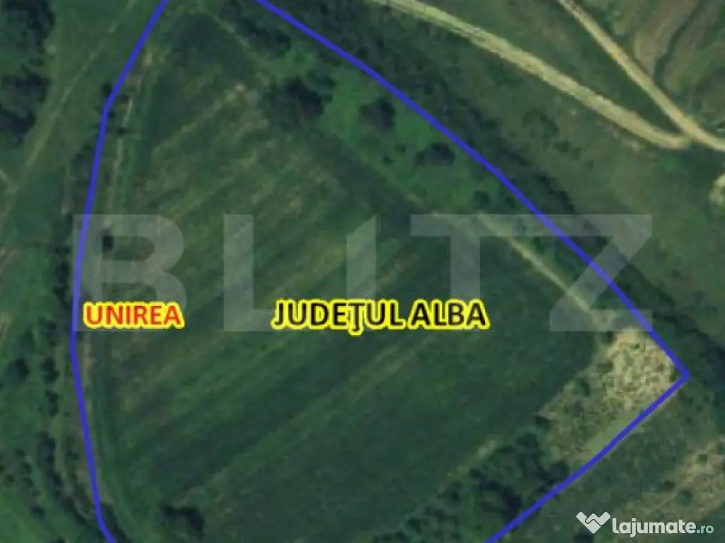 Blitz va ofera spre vanzare un teren cu o suprafata extrem de generoasa de peste 2ha, si anume 21.450mp mp, situat la intersectia judetelor Cluj si Alba, la 15 km sau 15 min cu masina de Mun. Turda, in intravilanul comunei Unirea, in sat Dumbrava, cu acces facil la Autostrada A10, parcela oferind intimitate si fiind ferita de zgomotul zonei! Terenul este situat la drum asfaltat, avand forma neregulata, dar cu front extrem de generos, pe 3 laturi, iar la limita proprietatii se regasesc utilitatile de apa, curent, gaz, precum si infrastructura de canalizare. Terenul este in prezent folosit ca teren agricol, dar este incadrat in intravilan cu categorie de folosinta: CURTI CONSTRUCTII ( datorita unei constructii mai veche ce a fost demolata ), arabil, si livada, fiind imprejmuit partial cu gard de plasa. Zona turistica si interesul crescut pentru dezvoltarea de case, pensiuni, activitati de turism, activitati industriale dar si agricole, pot sa fie un factor important pentru achizitei. Va stam cu placere la dispozitie pentru a discuta mai multe detalii! Cod ofertă / ID BLITZ: P127329 Id intern: P127329