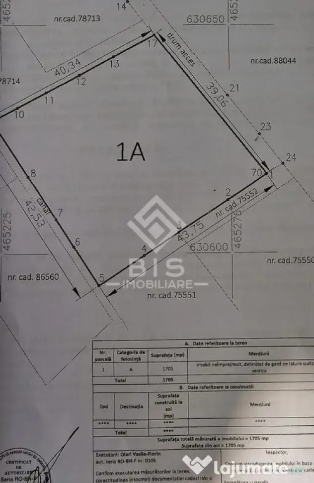 Configurație Premium: Terenul are o formă dreptunghiulară (aprox. 40m x 43m) și un front generos de 39 de metri.