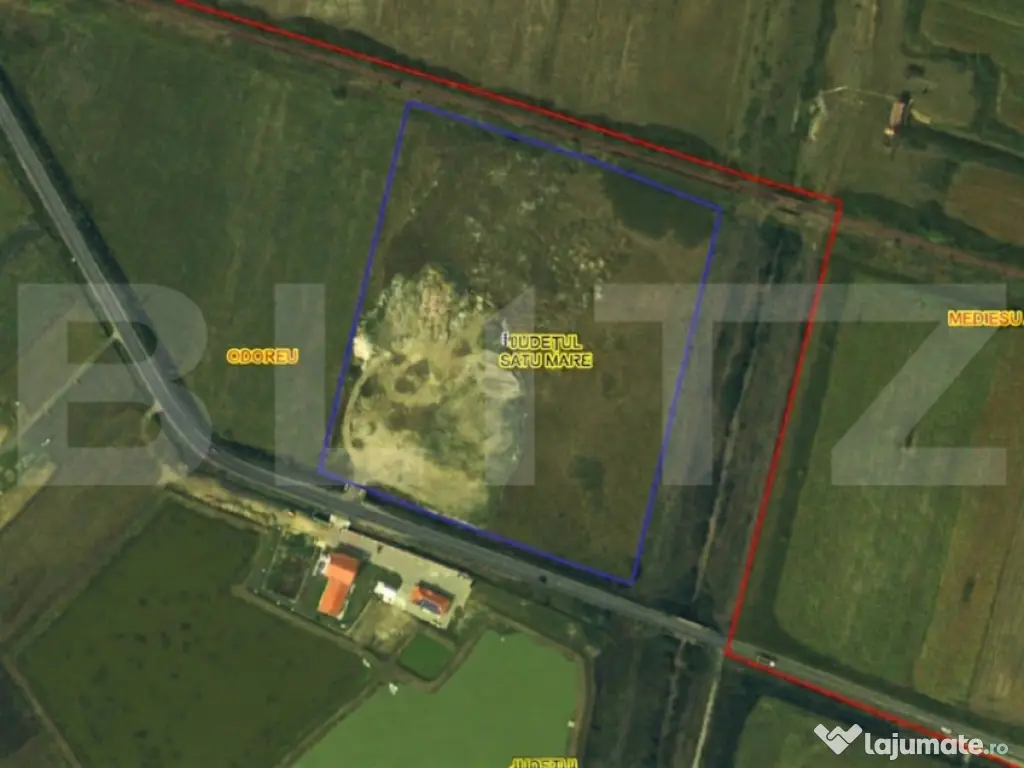 Teren intravilan de vânzare în zona Odoreu, cu o suprafață generoasă de 36.200 mp, ideal pentru investiții pe termen mediu și lung. Proprietatea beneficiază de o poziționare strategică, într-o zonă aflată în plină dezvoltare, cu acces facil și potențial ridicat de valorificare. Un avantaj major al acestui teren îl reprezintă infrastructura în curs de dezvoltare: în zonă a fost lansată licitația pentru drumul expres Satu Mare – Baia Mare, iar unul dintre nodurile principale de acces va fi amplasat în imediata apropiere a terenului. Acest aspect va crește semnificativ conectivitatea și atractivitatea zonei pentru dezvoltări industriale, logistice sau rezidențiale. Datorită amplasării și dimensiunii, terenul oferă multiple posibilități de dezvoltare, fiind o oportunitate excelentă pentru investitori care doresc să valorifice creșterea economică a zonei. Pentru mai multe detalii și vizionare, nu ezitați să ne contactați. Cod ofertă / ID BLITZ: P169424 Id intern: P169424
