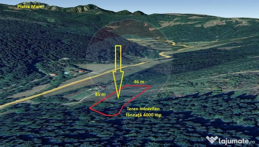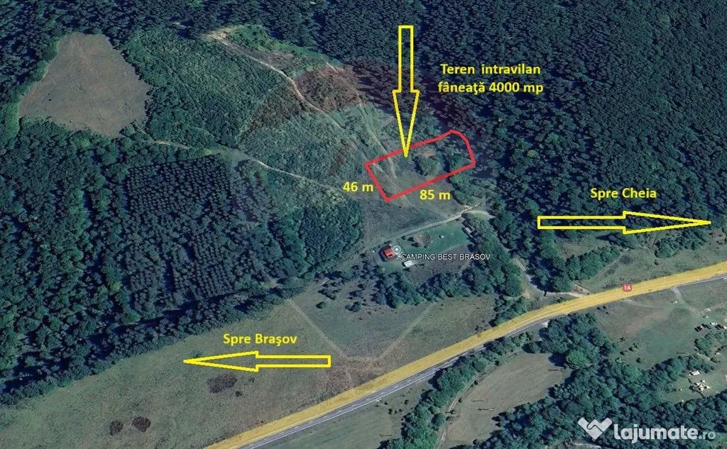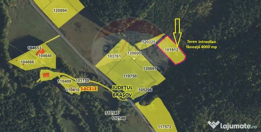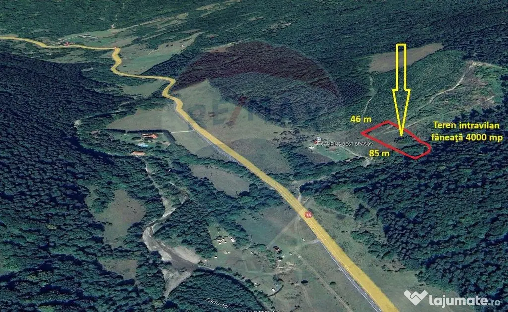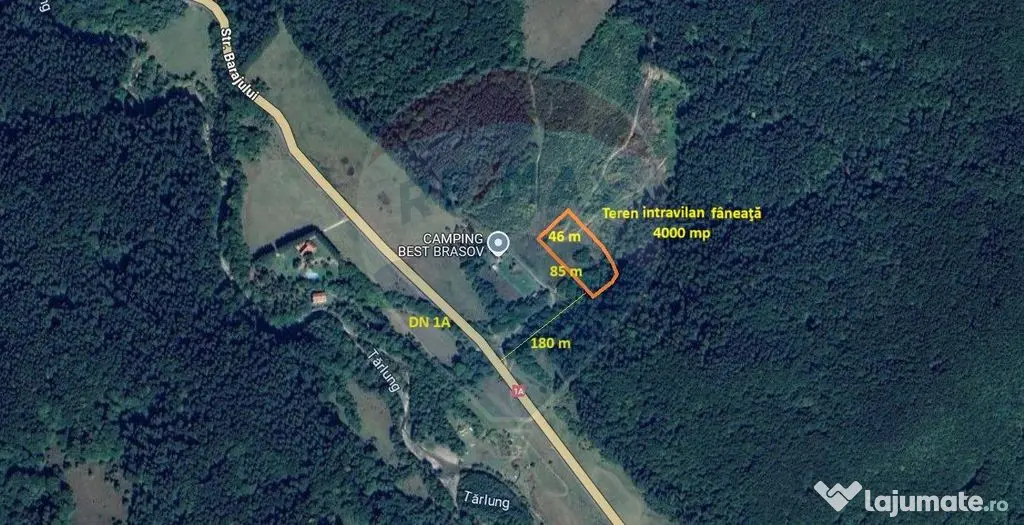 Teren intravilan, fâneaţă, neîmprejmuit, 4003 mp, situat la pe str Barajului, dinspre Săcele înspre Babarunca, pe stânga, cu front de 46 m la un drum de acces la teren. Obţinere certificat de urbanism în curs.