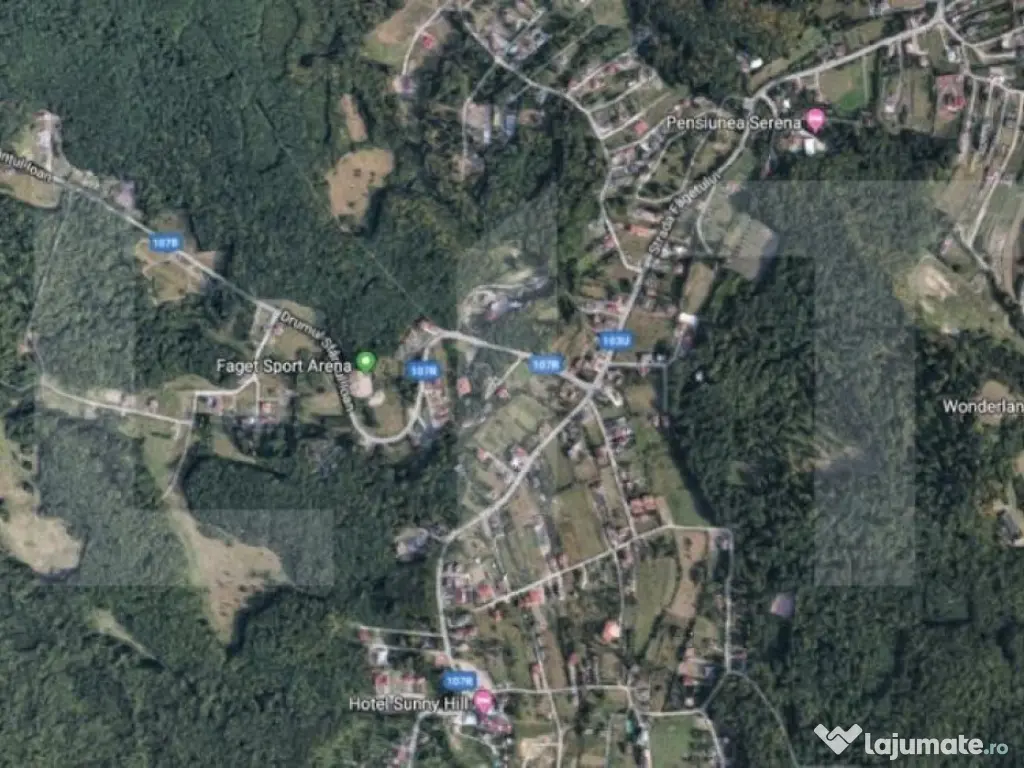 BLITZ ofera spre vanzare teren intravilan situat in Faget cu o suprafata de 5219 mp si front stradal de 53 ml, cu acces de pe drumul public asfaltat ce dispune de retele de electricitate si apa in apropiere de frontul parcelei. Reglementarile aferente zonei UTR - Aapp permit elaborarea de documentatii urbanistice pentru functiuni diverse, atat pentru agrement public cat si privat: Utilizarile admise: AGREMENT PUBLIC: alimentaţie publică, cazare turistică (pensiuni, vile turistice, camping), picnic, sport în aer liber, echitaţie, amenajări pentru activităţi în aer liber - terenuri de sport, platforme cu destinaţii diverse (spectacole, picnic, grătare, etc), alei, parcaje; AGREMENT PRIVAT: grădinărit, culturi pomicole, viticole, apicultură sau petrecerea timpului liber Terenul este plat si este situat intr-o alveola inconjurata pe trei parti de padure fara locuinte in imediata vecinatate. Contactati-ne pentru mai multe detalii! Cod ofertă / ID BLITZ: P4146 Id intern: P4146