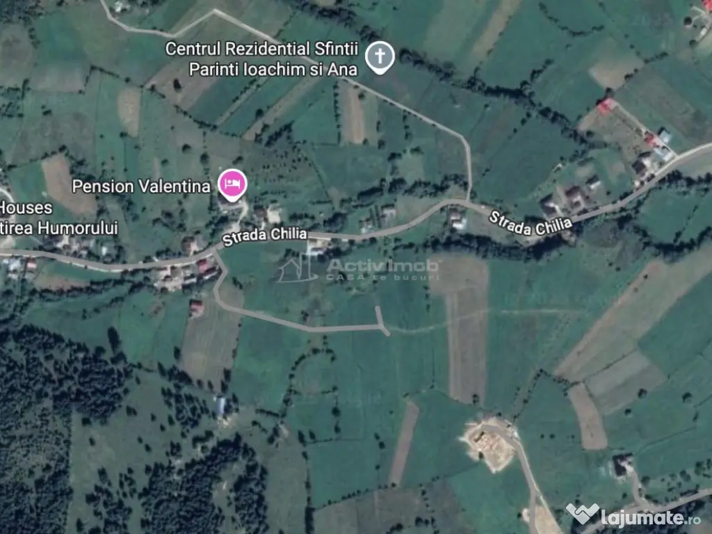 Amplasamentul este un punct forte al proprietatii: Terenul se afla la doar 2 km de Manastirea Humorului, una dintre cele mai vizitate atractii turistice din zona si inclusa in patrimoniul UNESCO. Zona este bine cotata in randul turistilor romani si straini, iar in imediata vecinatate se regasesc numeroase pensiuni de succes, precum Pensiunea Valentina, Pensiunea Casa Bunicilor sau Pensiunea Floare de Iris, ceea ce confirma potenialului turistic al zonei.