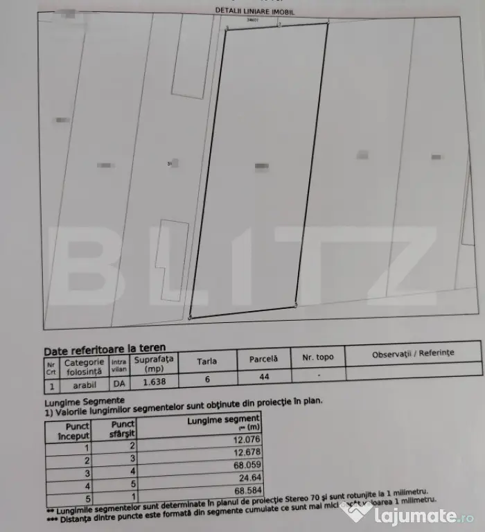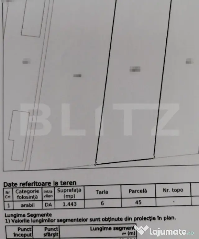 Terenul are o suprafață de 3081 mp, cu front stradal de 46.16 metri, acces facil la drum asfaltat și toate utilitățile (apă, gaz, curent, canalizare) disponibile în imediata apropiere.