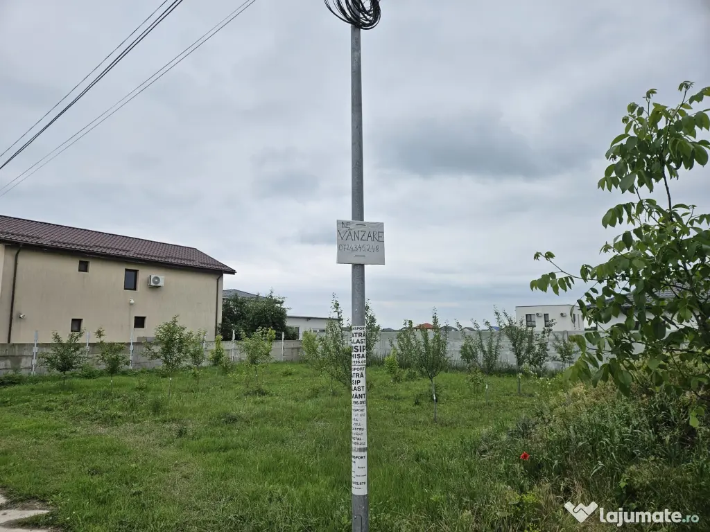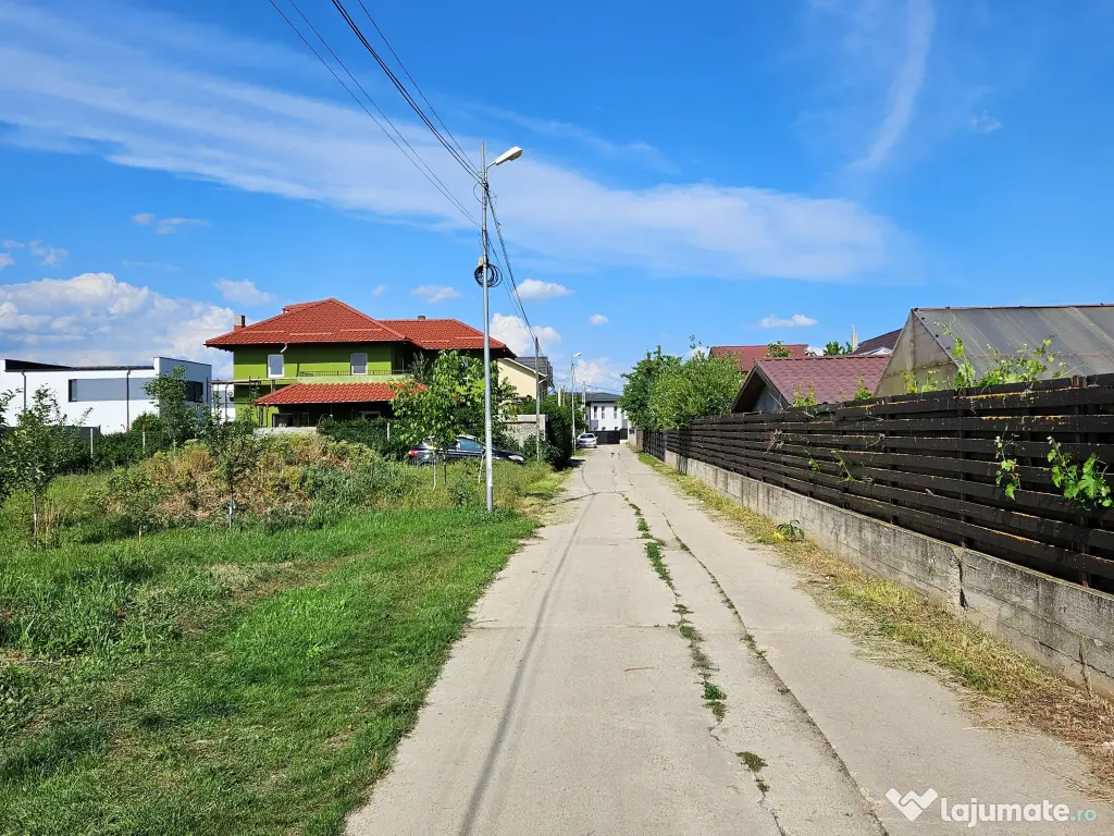- drumul este privat si betonat, stalp de iluminat stradal in dreptul lotului, conducta de gaze si cablul de curent sunt trase la teren.