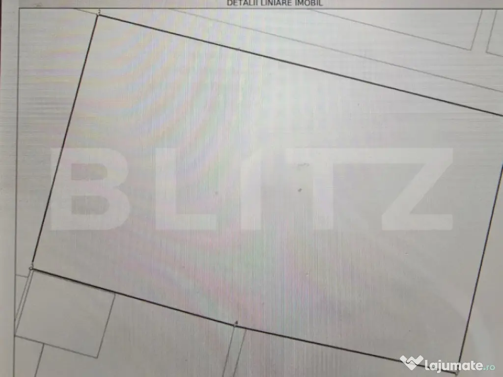 Blitz vǎ propune la vânzare teren intravilan situat într-o zonă rezidențială liniștită, cu acces facil la drum asfaltat. Ideal pentru construcția unei locuințe individuale. Suprafața permite amenajarea unei case cu grădină și curte generoasă. Suprafață: 588 mp Utilități: apă, curent, gaz, canalizare – disponibile la teren Pretabil pentru locuință proprie sau investiție. Cod ofertă / ID BLITZ: P164656 Id intern: P164656