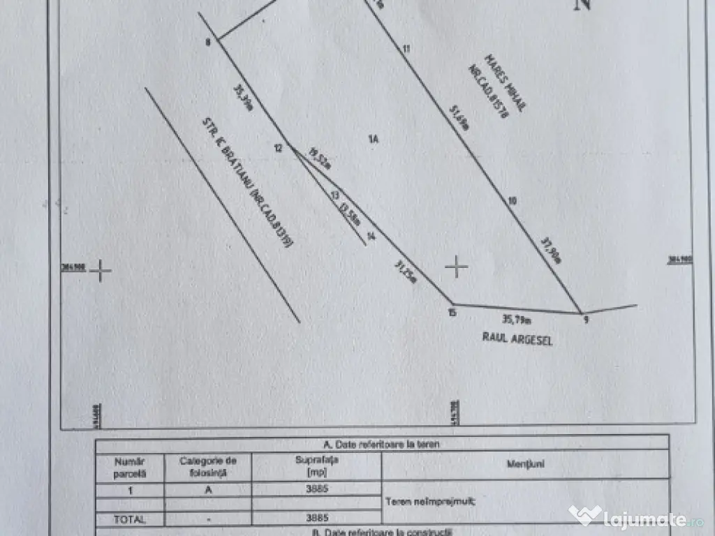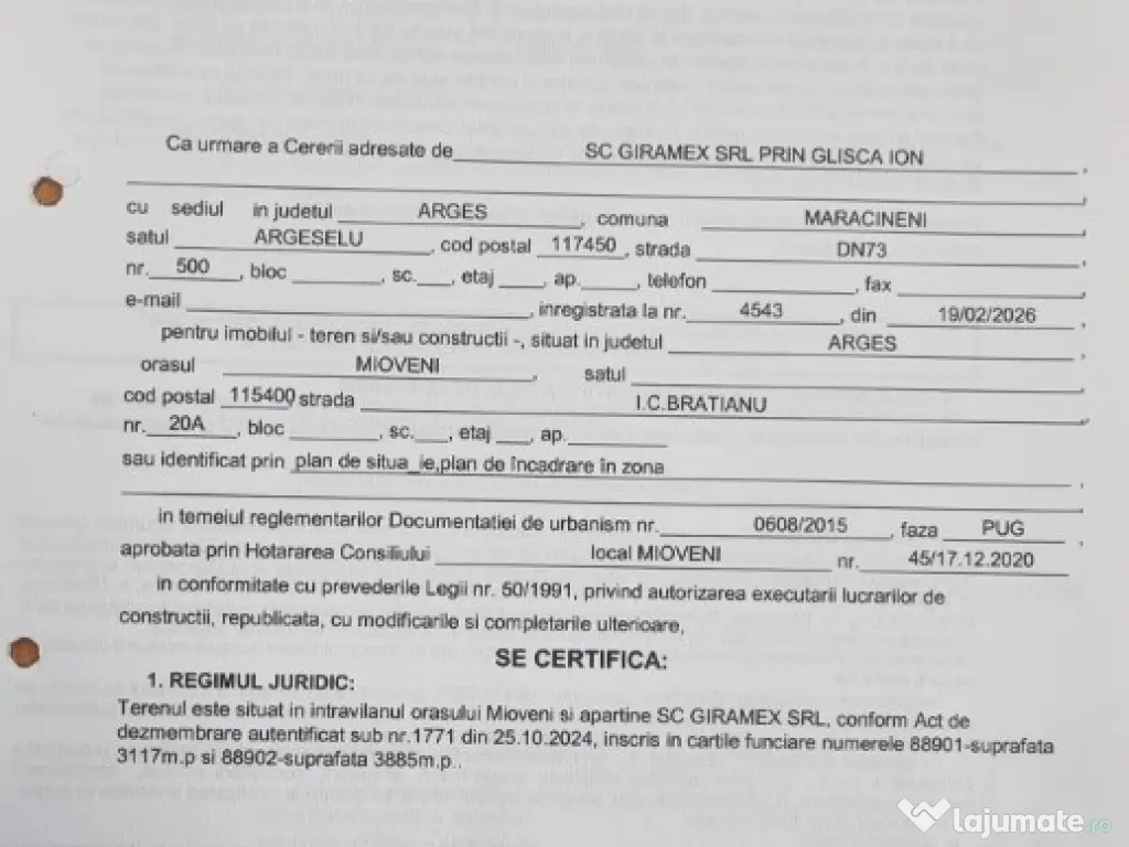 Teren intravilan de vânzare, în suprafață totală de 7.002 mp, situat în orașul Mioveni, județul Argeș, cu deschidere amplă de peste 70 m la Bulevardul I.C. Brătianu, arteră principală cu trafic intens și vizibilitate excelentă. Amplasamentul este poziționat strategic, în vecinătatea Mioveni Shopping Park și a principalelor puncte de interes economic, într-o zonă cu potențial comercial și investițional ridicat.