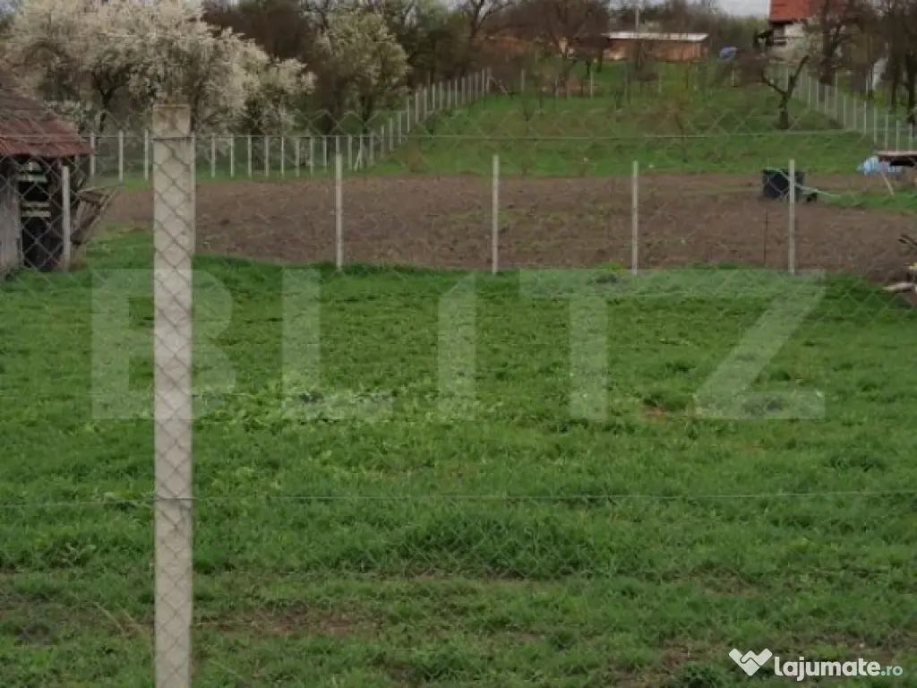 Terenul are un front stradal de 27 ml si o priveliste superba, cu sosea asfaltata, fiind imprejmuit cu gard pe 3 laturi.