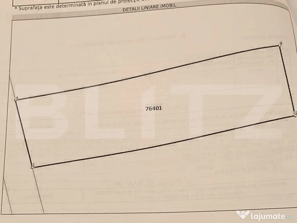 Blitz va ofera spre vanzare un teren in comuna Razvad cu o suprafata de 1950mp cu un front stradal generos de 23,7 ml cu apa si curent electric in vecinatate. Locatia este si ea generoasa pentru cei ce cauta liniste cu o priveliste spre zonele de padure. Exploatarea terenului este convenabila, suprafata totala a imobilului fiind nivelata. Spatiul este ideal pentru cei ce doresc sa-si construiasca casa mult dorita, o locuinta de vacanta, cat si cei care iau in considerare potentialul agricol al terenului. Terenul necesita eforturi de defrisare. Cod ofertă / ID BLITZ: P135153 Id intern: P135153