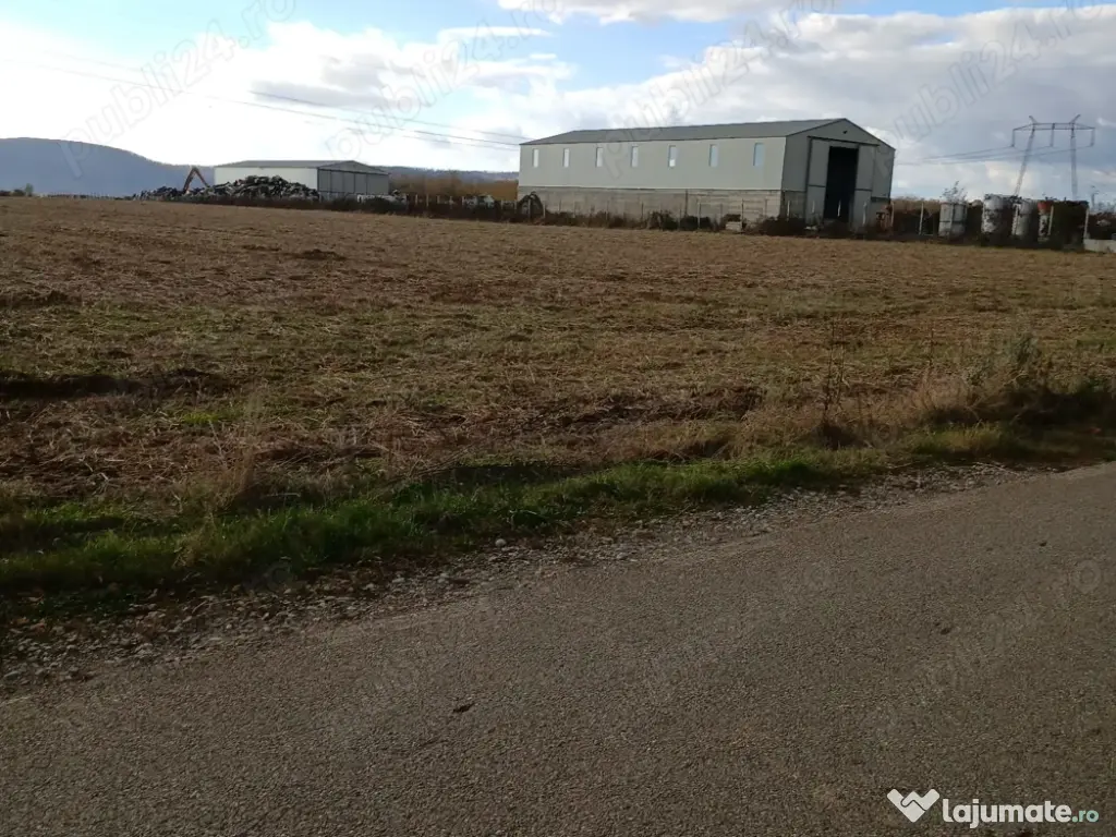 Parcela are deschidere la drum 25 m, formă dreptunghiulară și e potrivită pentru o construcție industrială (hală, depozitare, service, parcare).