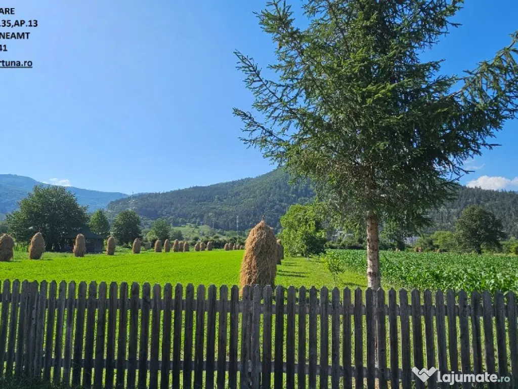 TEREN 4.400 MP INTRAVILAN PANGARATI, 12 EURO/ MP FORTUNA IMOBILIARE oferă spre vânzare suprafața de 4.400 mp teren intravilan, situat la 14 km de oraș, în intravilanul com. Pângărați, județul Neamț, într-o zonă liniștită, cu un cadru natural pitoresc. Terenul are front stradal de 22ml, poziționat lângă case, apa, curentul electric și gazul metan fiind în imediata proximitate. Are toate actele la zi, liber de sarcini. Preț 12euro/ mp. Pentru o prezentare detaliată a acestei oferte, furnizarea unor informații suplimentare referitoare la situația juridică / identificarea imobilului și programarea unei vizionări, vă invităm la sediul nostru, Fortuna Imobiliare, situat pe str. M. Eminescu, nr. 35, ap. 13, parter, lângă fostul Tribunal, tel. contact 0755.270.041. Your comfort is our priority ! Oferta noastră completă o găsiți aici: https://imobiliarefortuna.ro/