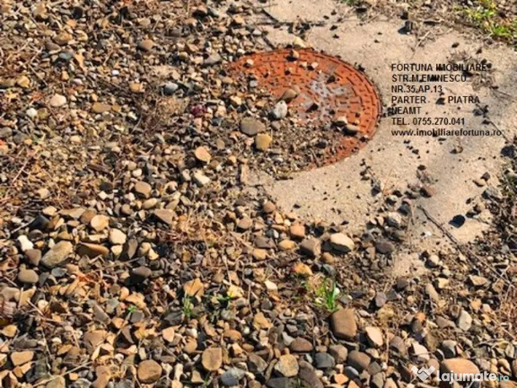 Teren intravilan Piatra Neamt cu toate utilitatile ( apa, curent, gaz, canalizare ) in cartier rezidential, ferit de zgomotul orasului, insorit, priveliste minunata . Are suprafata de 1096 mp, front stradal 16 ml, pret 50 euro / mp. Vizionarile se fac doar pe baza de programare la tel.0755.270.041. Pentru mai multe detalii va asteptam la biroul nostru situat pe str.M.Eminescu nr.35, ap.13, langa fostul Tribunal. Oferta noastra completa o gasiti aici : https://imobiliarefortuna.ro./