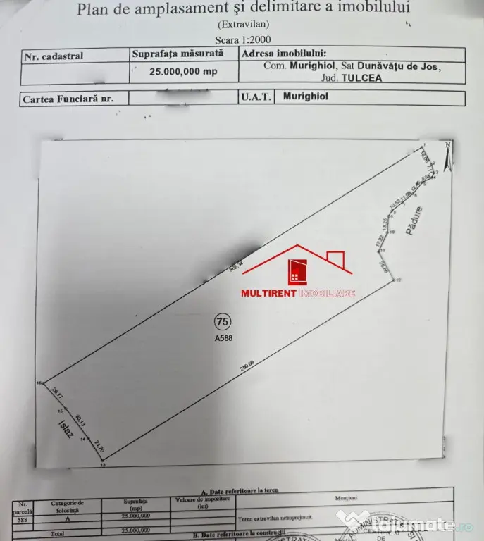 Se oferă spre vanzare un teren extravilan , situat in Dunavatu de Jos (Comuna Murighiol) , având o suprafață totala de 25.000 mp.