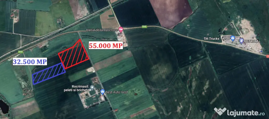 Vand teren la iesire din Arad spre Santoma, 8.75 ha lot compact, teren aflat la 50 m de soseaua Arad-Nadlac cu front 295 m liniari, teren agricol extravilan.