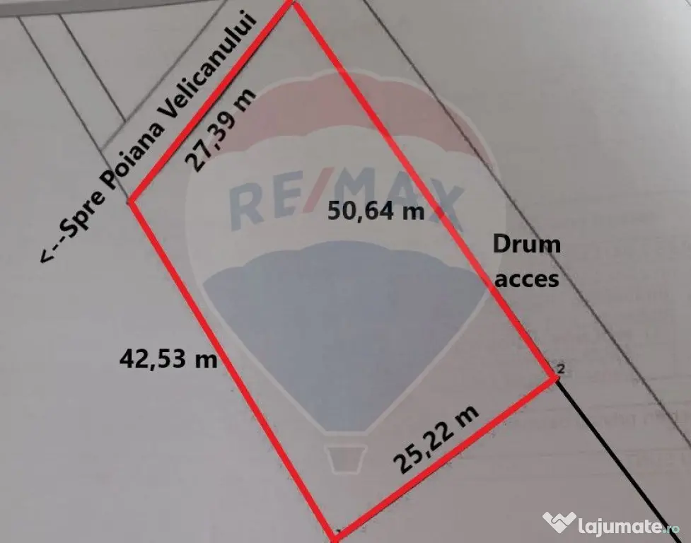 Accesul se face din două drumuri, atat din drumul principal, str. Poiana Velicanului, cu o deschidere de 27,39m cat și din drumul lateral, cu o deschidere de 50,64m. Aceasta înseamnă că puteți organiza eficient traficul și locurile de parcare, astfel încât totul să fie la îndemână, fără a compromite confortul vizitatorilor sau intimitatea acestora.